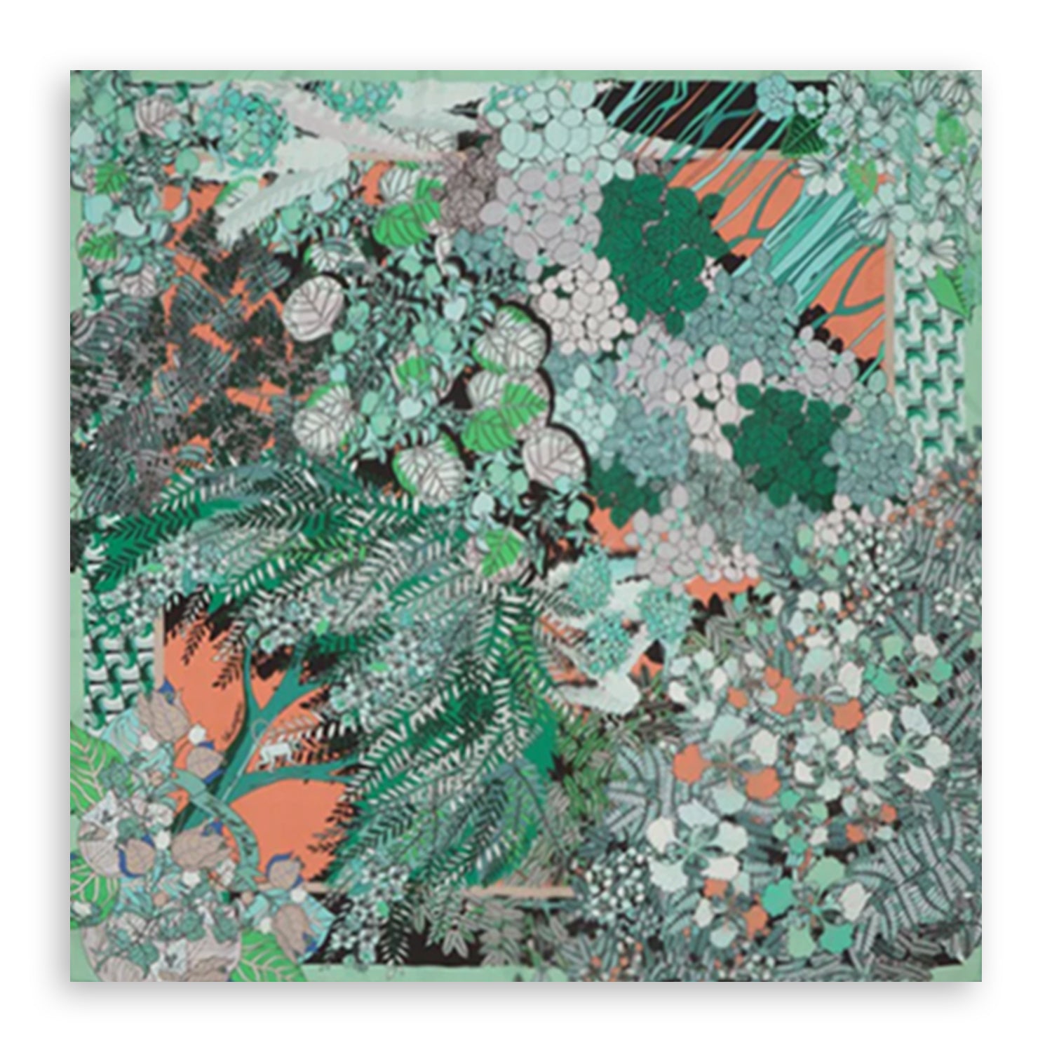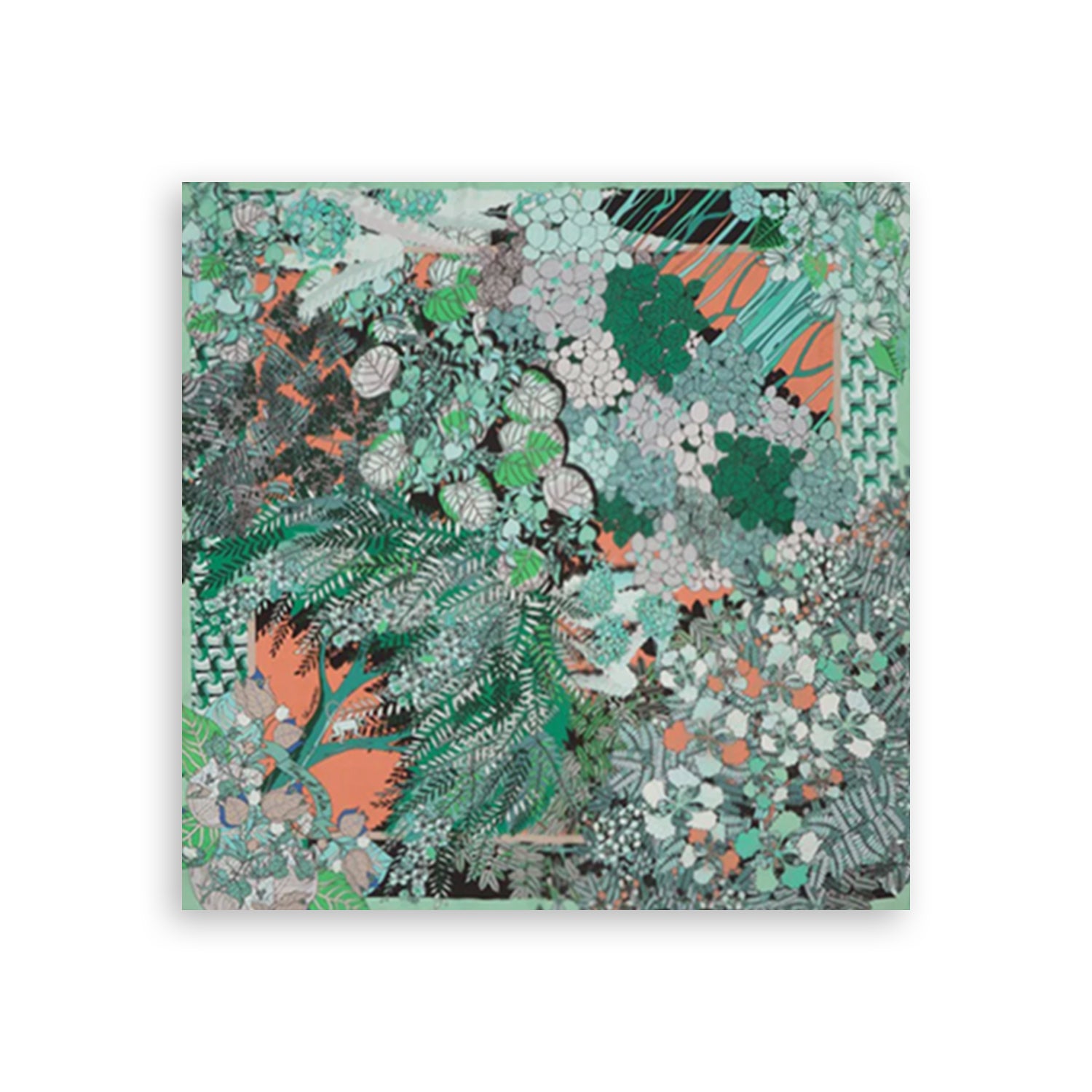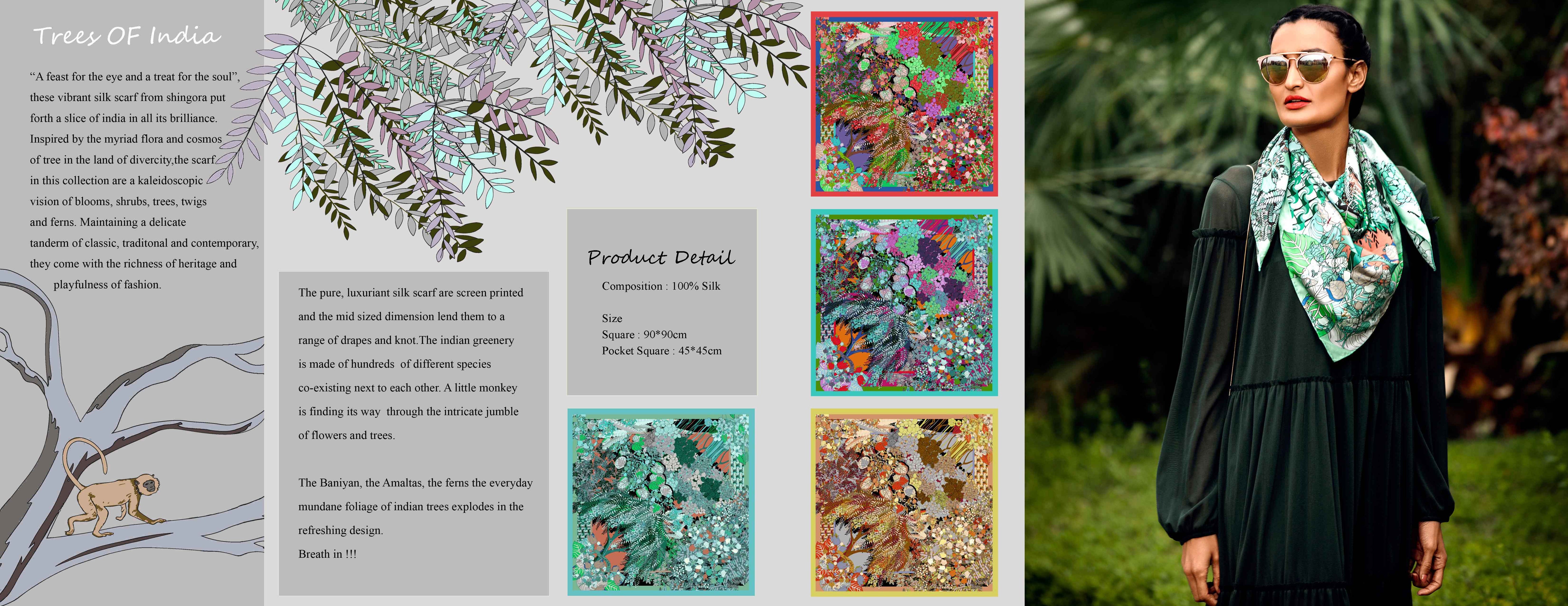 India’s diverse flora — the Banyan, Amaltas, and Gulmohar — comes alive in this lush, detailed scarf. With each leaf and hidden monkey, the piece invites you into a mystical forest that celebrates coexistence and calm.